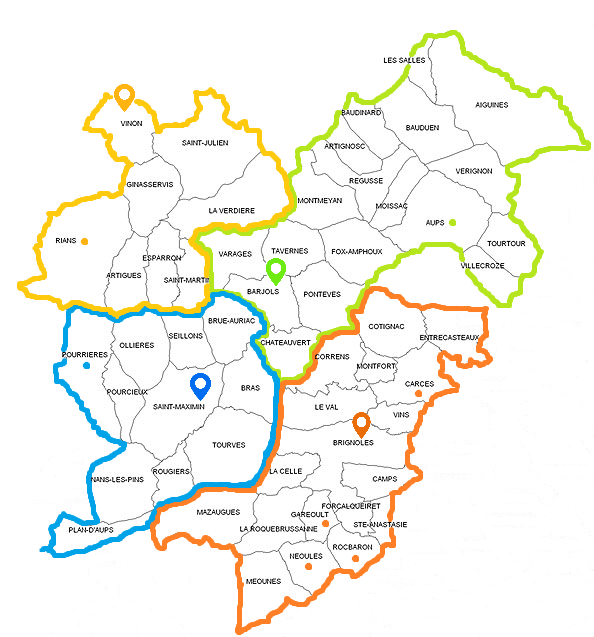 La Mission Locale Ouest Haut Var intervient sur un territoire de 55 communes, rattachées à 5 antennes : Brignoles, Saint Maximin, Barjols, Vinon sur Verdon et Rians.