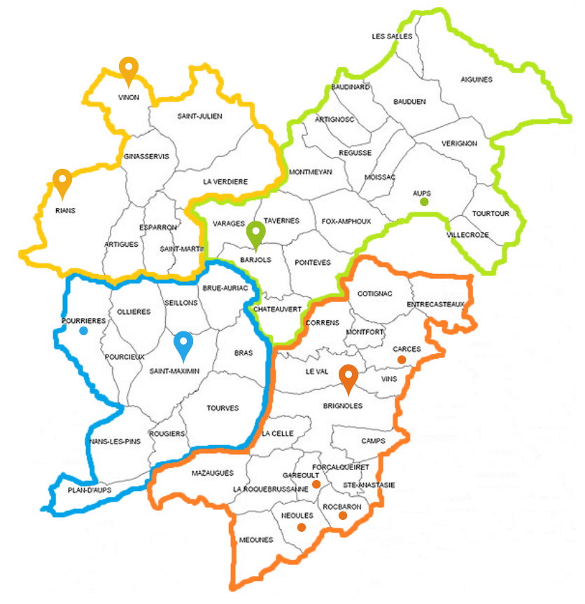 La Mission Locale Ouest Haut Var intervient sur un territoire de 55 communes, rattachées à 5 antennes : Brignoles, Saint Maximin, Barjols, Vinon sur Verdon et Rians.